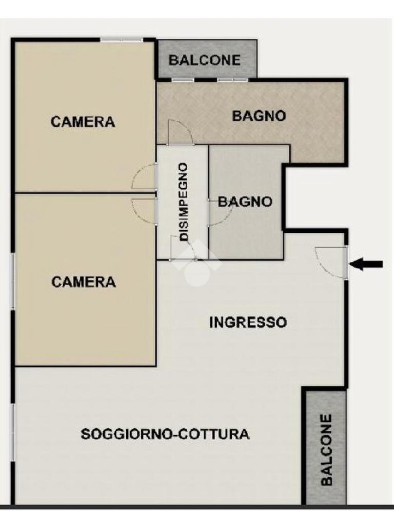 Entrando nell'appartamento tramite la porta blindata, si accede al luminoso soggiorno con cucina a vista, che dispone di due balconi. Attraverso il disimpegno della zona notte si accede alla camera matrimoniale, dotata di un balcone privato, alla camera singola e ai due bagni.